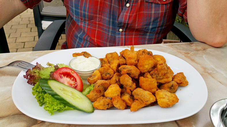 Mushrooms coated in golden breadcrumbs deep fried until crispy.