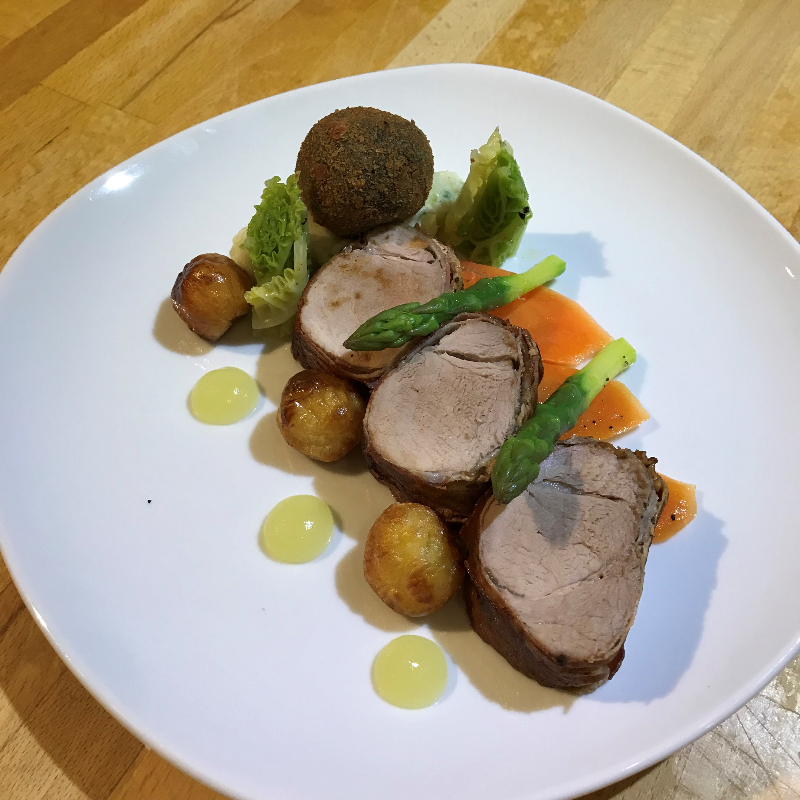 Pork Fillet with Black Pudding, Champ and Apples
