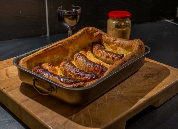 British classic, Sausages cooked within a Yorkshire pudding.